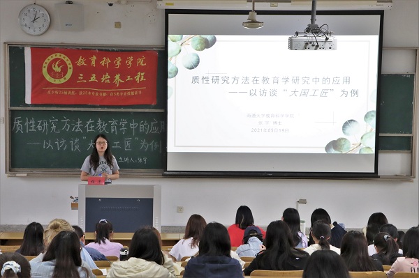 2021年5月19日,好色tv 在主校区4号教学楼203教室成功举办了以“质性研究方法在教育学中的应用”为主题的三五讲座。此次讲座由张宇老师担任主讲老师,来自教科院的260余名学生参加了本次讲座。