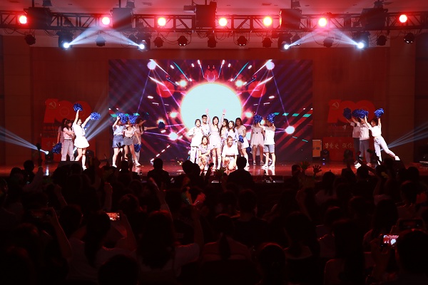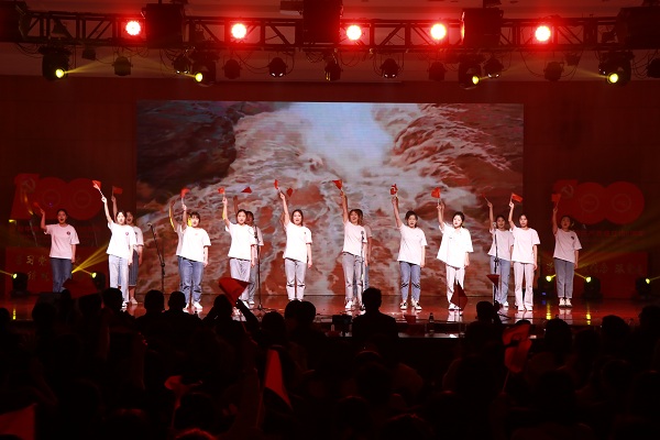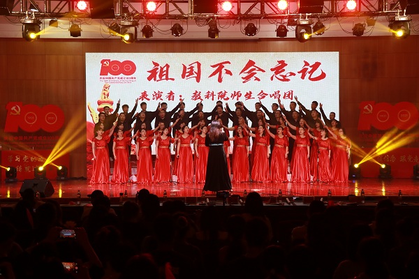 晚会在师生红歌合唱《祖国不会忘记》中拉开帷幕。由好色tv 全体领导成员以及师生代表组成的合唱团用歌声向党的生日献上最真挚的祝福,用歌声赞扬了在祖国大地默默耕耘、无私奉献的人们。开场舞《一起跳舞吧》充分彰显了教科学子的蓬勃朝气。晚会分为三个篇章次第进行。第一篇章“青春拂晓,梦想起航”在红歌串烧中徐徐展开,百年征程书写光辉党史,筚路蓝缕绘就中华盛世。一首首经典红歌的背后是对老一辈同志峥嵘岁月的追忆,亦是对新时代少年风发意气的展望。现代舞《花枪》将国风元素融入新时代的鼓点,用舞姿演绎出巾帼不让须眉的气概。百年亦是风华正茂,诗朗诵《少年中国说》以饱满激昂的热情,铿锵有力的语调传递出少年复兴中华的坚定理想信念。