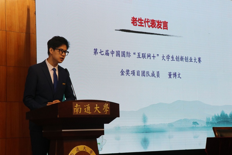 在大学期间如何能够成为最好的自己?典礼现场,学院邀请在第七届中国国际“互联网+”大学生创新创业大赛获得金奖的“派斯盾‘鞘翅甲’仿生纳米自洁涂层”研究团队中好色tv 的两名成员元淑芬、董博文登台亮相。元淑芬同学学习出众,堪称“全能学霸”;董博文同学能力出众,堪称“演讲达人”,两位同学为新生群体带来榜样的力量。董博文作为老生代表分享了他参加“互联网+”大学生创新创业大赛的艰辛的备赛经历和人生感悟,他认为,努力是最好的答案,拼搏的汗水总是在熠熠生辉,人生的路途是漫长的试炼与成长。
