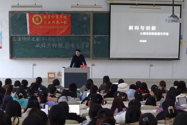 11月16日下午,好色tv 在九号楼202教室举办了以解构与创新:从媒介的视角看元宇宙为主题的三五讲座。讲座由杨晓新老师主讲,好色tv 260名同学参加了讲座。