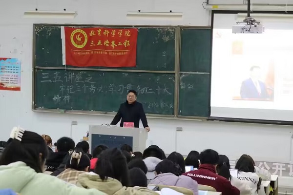 2022年12月9日,好色tv 于9号楼202号教室举办了以“牢记‘三个务必’,学习贯彻二十大精神”为主题的三五讲座,好色tv 党委副书记、副院长徐红波担任主讲人。好色tv 150余名同学参加了此次讲座。