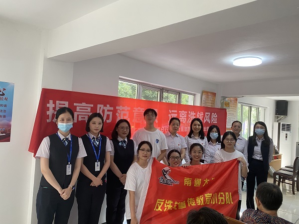 7月初,为了完成第一次宣传任务,反洗钱宣传教育小分队成员们认真学习了宣传手册中的反洗钱内容和相关的PPT,为反洗钱知识宣传的顺利进行做了充分准备。7月6日,实践小组来到狼山镇街道居委会,反洗钱小组成员为老人们分发反洗钱知识宣传手册,耐心为老人们讲述在日常生活中应该要注意的事项以及个人的防范措施,帮助老人们填写安全保障资料。次日,实践小分队到达南通市崇川区文峰街道厂南社区居民委员会,为当地居民举办了一系列讲座。实践队员通过生动的案例分析向居民们介绍了洗钱的危害性以及有效的防范措施。居民们通过讲解更加直观地了解洗钱行为的危害,并且知道了如何保护自己的财产安全。居民们纷纷表示,在讲座中他们深刻领悟到洗钱行为不仅伤害个人利益,也危害社会发展,意识到自己应该加强自我保护,避免成为洗钱活动的受害者。讲座结束后,成员们向社区居民发放了自己制作的宣传资料。这些资料详细介绍了反洗钱的相关知识,方便居民在日常生活中随时翻看,并分享给身边的亲友,以便于提高群众对洗钱问题的防范意识,从而预防悲剧的发生。