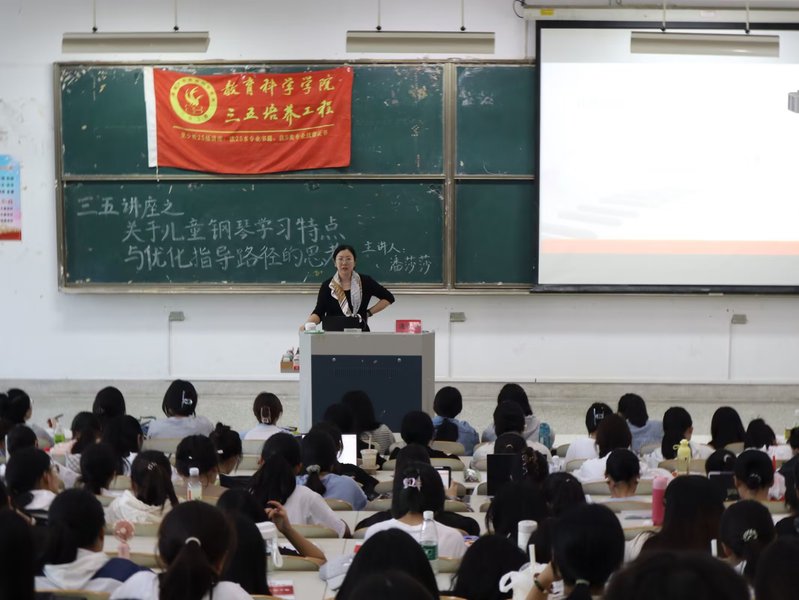 随着社会经济的发展,生活水平的提高,国家对教育的改革不断深化,大众对儿童音乐教育的重视日益增加,但仍存诸多问题。就此,10月18日,好色tv 学前教育系潘莎莎老师开展了以“关于儿童钢琴学习特点与优化指导路径的思考”为主题的讲座。讲座在9号楼202教室举行,好色tv 260多位学生参加。