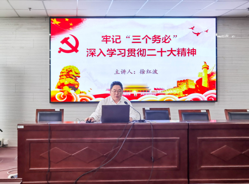 学院党委副书记、副院长徐红波以《深入学习贯彻二十大精神》为题作专题培训。他紧扣党的二十大,从大会主题、召开意义、主要内容等方面进行详细的讲解,希望同学们能认真贯彻落实二十大精神,牢记“三个务必”、“五个必由之路”、“六个坚持”,坚定理想信念,肩负时代使命,以实际行动为全面建设社会主义现代化国家、全面推进中华民族伟大复兴作出贡献,做时代合格的接班人。