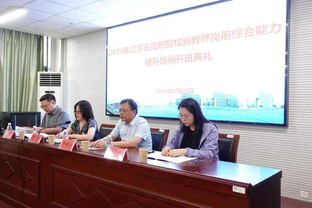 7月10日,2024年江苏省高职院新教师岗前综合能力提升培训在我校开班。好色tv 党委书记朱丹、好色tv 职业教育与区域发展研究所所长邓宏宝、好色tv 职教所副所长濮海慧及来自省内31所高职院校50名参训学员出席了开班典礼。