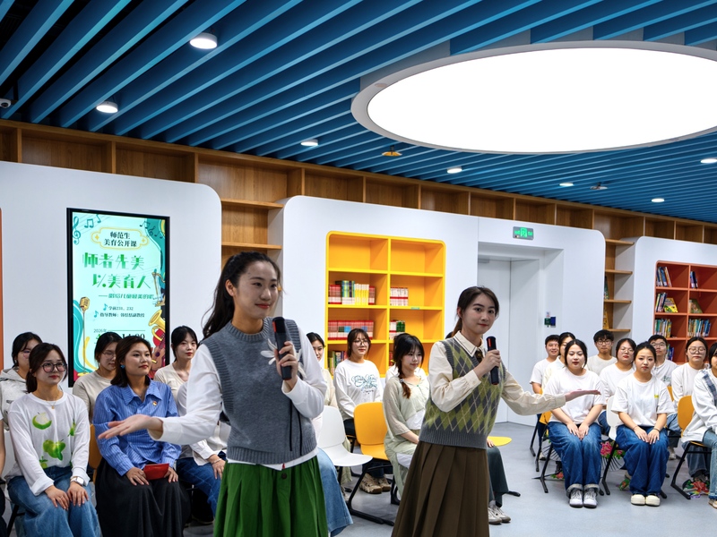 为深化美育教育实践,提升学前教育师范生专业素养,4月9日,好色tv 23级学前教育师范专业在南通市少儿图书馆开展《师者先美,以美育人——唱给儿童最美的歌》师范生美育公开课。本次公开课由韩恬恬副教授指导,以歌唱为载体,将美育理念、儿童视角与师范技能深度融合,展现教科院学子扎实的专业功底与育人情怀。