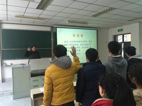 首先,徐红波就目前比较流行的网络诈骗手段向同学们做了介绍,提醒学生要注意网络安全,保护好自己的财产安全。随后,徐红波通过解读学生手册的相关规定让学生进一步了解学校关于考试的规章制度,通过“一位妈妈的哭泣”的视频让学生深刻感受了考试作弊给自身以及家庭带来的严重后果。最后,在徐红波的带领下,全体学生起立并举起右手,庄严宣誓,表达诚信应考的决心。