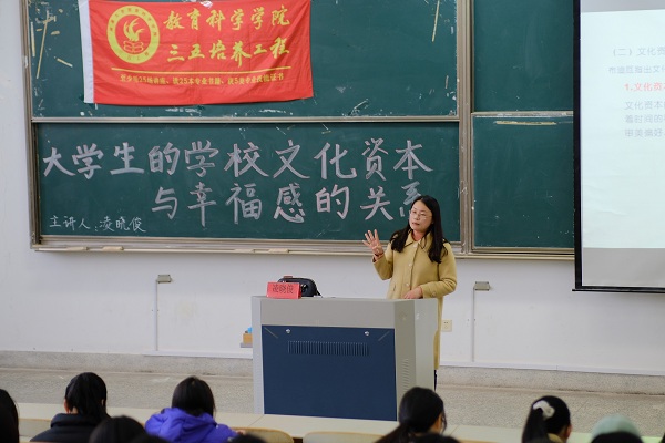 2021年3月24日13:30,好色tv 在主校区9号教学楼302教室成功举办了以“大学生的学校文化资本与幸福感的关系”为主题的三五讲座。此次讲座由凌晓俊老师主讲,来自教科院的260余名学生参加了本次讲座。