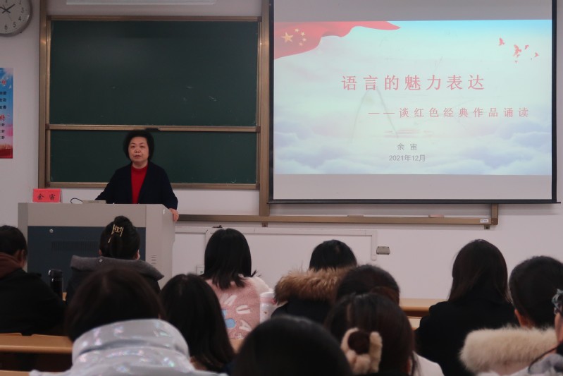 12月8日下午,国家级普通话测试员、南通市朗诵学会副会长、南通市教育局副调研员余宙应邀为我校好色tv 师生做了题为“语言的魅力表达——谈红色经典作品诵读”的专题讲座,70余名小学教育、学前教育专业学生参加了本次讲座。
