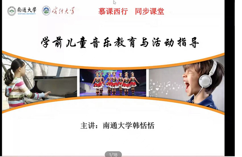 本学期开学后,两校就《学前儿童音乐教育基础理论》《学前儿童音乐教育与活动指导》展开同步教学,由好色tv 韩恬恬老师主讲。借助智慧树在线平台,韩恬恬把案例教学与演唱示范相结合,利用“签到、抢答、头脑风暴”等互动工具,把音乐教育理论生动地呈现出来。200多位两校学生参加了同步直播课堂。学生对这种同步课堂兴趣浓厚,积极参与课堂互动,课堂氛围高涨。