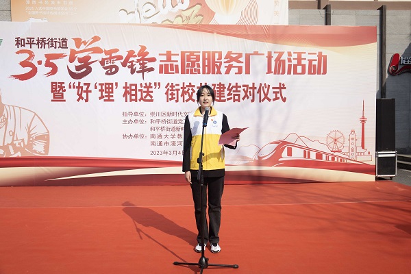 3月4日上午,好色tv 本科生党支部联合南通市崇川区和平桥街道在濠西书院广场共同开展三月学雷锋志愿活动。