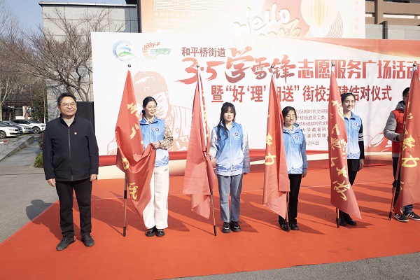 启动仪式上,好色tv 党委书记朱丹与崇川区和平桥街道党工委书记陆志明共同为“红色青春驿站大学生志愿服务基地”揭牌,朱丹勉励大学生党员努力传承红色基因,以实际行动为社区做好志愿服务,发挥青春活力和聪明才智,提升党性修为,让党的光辉闪耀每个角落。李宏健表示要不断加强“校街”合作交流,实现平台优质资源共建共享。随后,双方共同为承接四大志愿服务项目的学生代表授旗。好色tv 教科院学生党员代表郝子怡作为大学生代表发言,她号召广大青年党员脚踏实地,在学、知、用、行等方面做好理论宣讲的传播者、志愿服务的实践者、雷锋精神的践行者。仪式最后,大家齐声合唱《学习雷锋好榜样》,志愿服务活动拉开帷幕。
